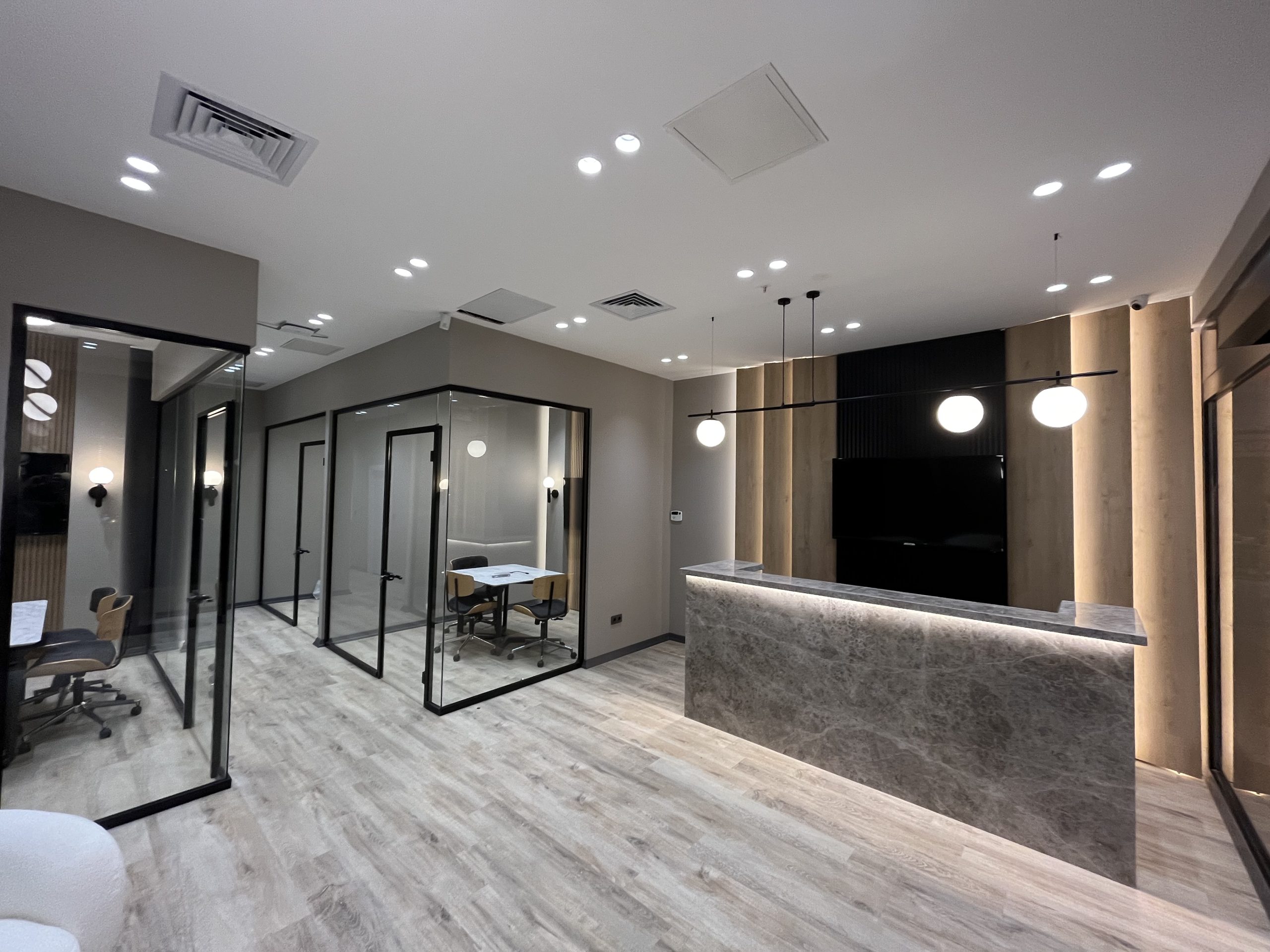 Modern çalışma kültürünü destekleyen, ergonomiyi ve mekânsal verimliliği ön planda tutan ofisler tasarlıyoruz. Çalışanların odaklanmasını, etkileşimini ve üretkenliğini teşvik eden planlama kararlarıyla ferah ve dengeli mekânlar oluşturuyoruz. Işık, malzeme ve dolaşım kurgusunu doğru şekilde ele alarak konforlu bir çalışma atmosferi sağlıyoruz. Tasarlanan ofisler, kurumsal kimliği yansıtan çağdaş ve işlevsel mekânlara dönüşüyor.